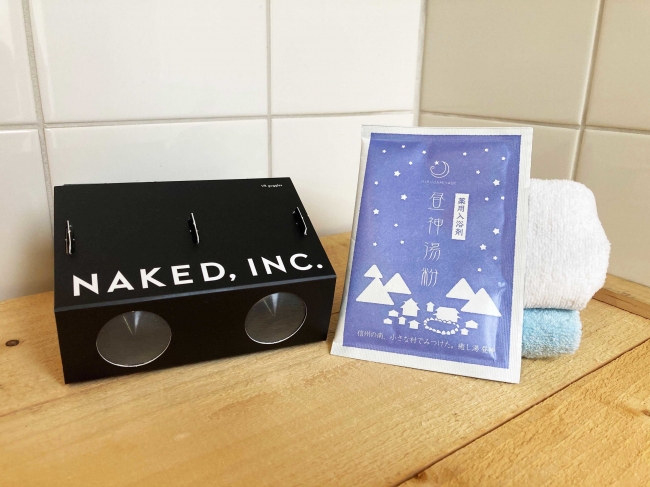 今回は、日本一の星空の村、長野県阿智村(あちむら)とコラボレーションし、阿智村の日本一のヴァーチャル星空を楽しめるVR映像とNAKED, INC.特製ゴーグル、阿智村内の温泉郷「昼神温泉(ひるがみおんせん)」の温泉の素がワンパッケージに。ご自宅のお風呂に昼神温泉の入浴剤を入れ、お湯に浸かりながら360°VR映像で、阿智村の日本一の星空鑑賞ツアーをお楽しみいただけます。