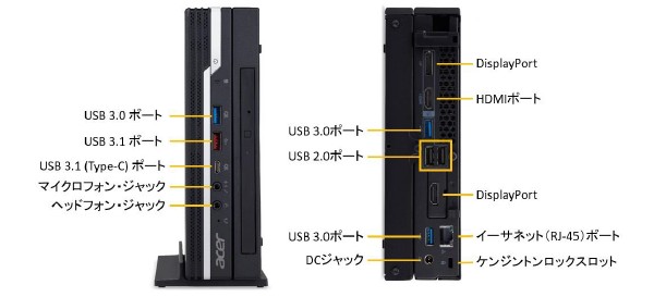 Veriton Nは無線LAN搭載の省スペースデスクトップPCシリーズ。モニター背面に取付け可能な1LサイズのCore i5搭載「VN4660G-F58Q1」とCore i3搭載の「VN4660G-F38Q1」、光学ドライブとパラレルポートを装備したCore i5搭載の3Lサイズ「VN4660G-F58U3」もラインナップします。