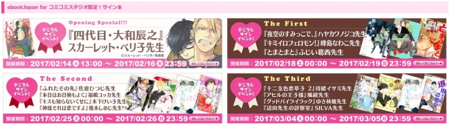 スカーレット・ベリ子先生など総勢12名のBL作家のデジタルサイン企画やオリジナル特典が充実の電子書店「eBookJapan for コミコミスタジオ」オープン!