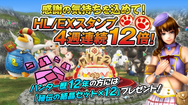 ハンターの皆さまに感謝の気持ちを込めて、「MHF 12th Last Anniversary Festival」と題して、HL&EXコース無料開放などの豪華イベント&キャンペーンをスタートいたしました。