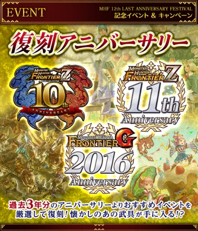 【モンスターハンター フロンティアZ】おかげさまで12周年!最後のアニバーサリーフェスティバルにて「HL&EXコース無料開放」など開催中!!