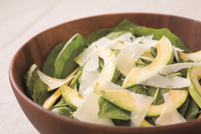 ミラノの家庭料理のベビースピナッチとアボカドのサラダ。