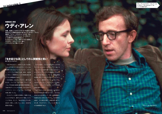俳優、監督としてのキャリアが50年を超えた現在も、毎年のように監督作品を世に送り出しているウディ・アレン。最新作『カフェ・ソサエティ』(2016)では、1930年代のハリウッドとニューヨークという、二つの華やかな社会を描き出しました。インタビューでは、同作でヒロインを演じたクリステン・スチュワートとアレン監督が、自身の経験からハリウッドを語ります。また、監督自身をほうふつとさせる主人公にどれだけ本人像が投影されているのかが、本人の口から語られます。