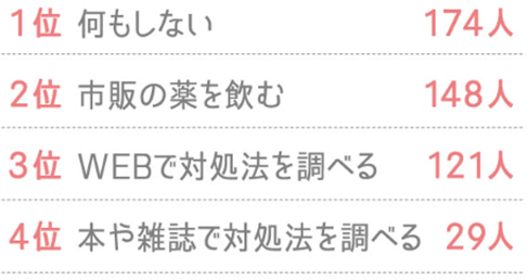 1位 何もしない、2位 市販の薬を飲む、3位 WEBで対処法を調べる
