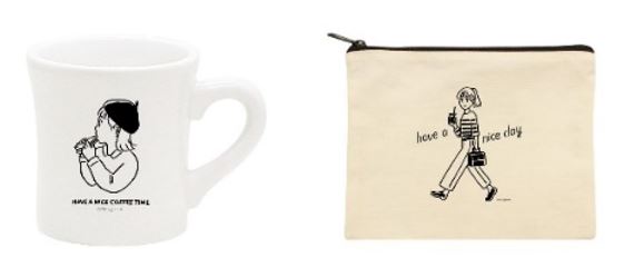 ●オリジナルグッズ販売:マグカップ(1300円)、ポーチ(700円)ほか
