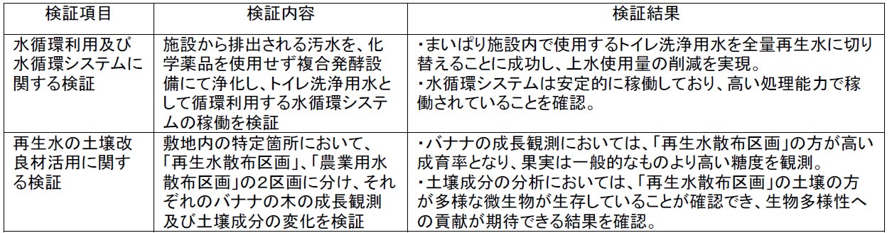 (2)再生水は農作物の成長を向上させるための土壌改良材となることが期待されるため、まいぱり果樹園に再生水を散水し、安全な農作物の成長の向上、土壌や海洋環境の改善、生物多様性保全への効果を測定。