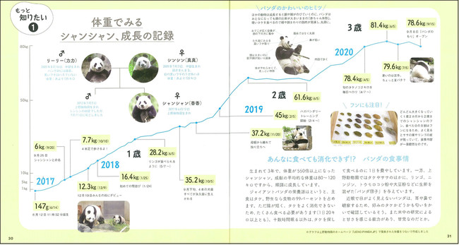 ジャイアントパンダにまつわるミニ知識や上野動物園の福田豊園長インタビューなどコラム記事も収録しました。シャンシャン誕生の成功の秘訣、さて何でしょう?