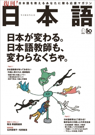 この度、アルク創立50周年を記念して『月刊日本語』の復刊版として刊行する『日本語』では、外国人受け入れの最新動向や日本語教育の現場、日本語教師の姿を、さまざまなインタビューや寄稿、データなどを通してお届けします。今後、国民的な課題となる日本語教育の役割について多角的に掘り下げました。