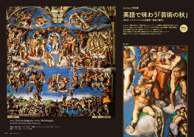 ルネサンス期のイタリアの巨匠、ミケランジェロの代表作である宗教画「最後の審判」。作品の構図に込められた意味やアトリビュート(芸術において、作品に登場する人物に特有の属性を示すために描き添える物)について英語でレクチャーします。音声と併せてお楽しみください。