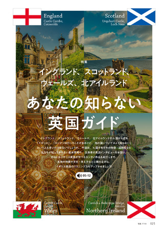 イングランド、スコットランド、ウェールズ、北アイルランドの4国から成る「イギリス」。「ロンドンは行ったことがあるけど、他の国についてはよく知らない」という人も多いのではないでしょうか。今回は、4国それぞれの特徴・国民性など、私たちが知っておきたい基本情報や、出身者の生英語インタビューをお届け。さらにはイギリス英語が学べるエンタメ作品も紹介します。各地の特徴や文化・考え方などに触れながら、イギリス英語のリスニング力もアップさせましょう!
