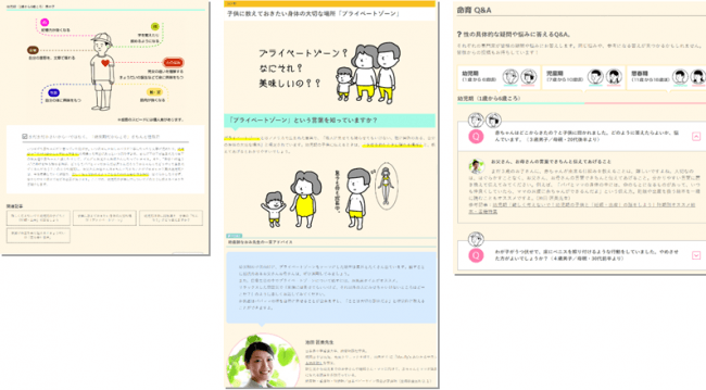 内容:年齢・性別に応じた成長発達や性教育ノウハウのコンテンツ、医師専門家に性の疑問・悩みを相談できる「命育Q&A」、読者同士で交流する「体験談・掲示板」(※準備中)など