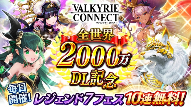 至高のハイファンタジーRPG『ヴァルキリーコネクト』全世界累計2,000万ダウンロード突破記念の豪華キャンペーンを開催!今だけ「レジェンド7フェス」10連が毎日無料!