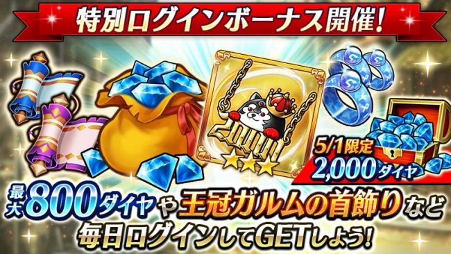 さらに、5月1日(金)限定で、ログインしたユーザーに2,000ダイヤをプレゼントします。