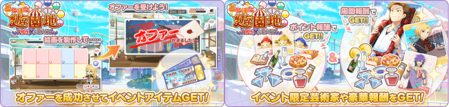 株式会社クリーク・アンド・リバー社(以下C&R社)のゲーム分野の子会社・株式会社クレイテックワークス(以下CTW)は、本日11月8日(金)よりスマートフォン向け芸術家育成タイムライズゲーム『パレットパレード (以下パレパレ) 』において、ゲーム内イベント『どたばた遊園地 相性×な2人組』を開始いたしました。また11月9日(土)・10日(日)に開催される「アニメイトガールズフェスティバル2019(AGF)」への出展を記念して、ゲーム内およびTwitterでキャンペーンを実施いたします。