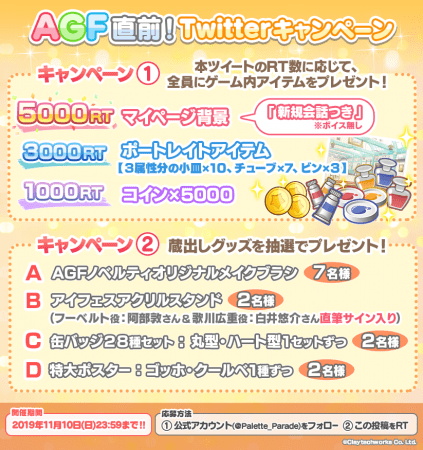 (2)フォロー&RT者から抽選で、『パレットパレード』グッズをプレゼント!