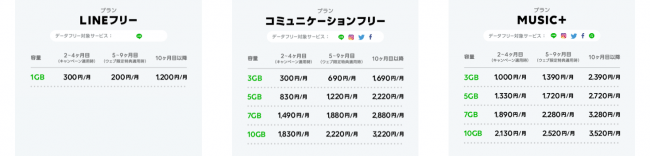 *1 2019年4月30日以前にお申し込みの場合、月額基本利用料は初月無料となるため割引は適用されず、2〜4ヶ月目のみ割引適用となります。詳細はキャンペーンページ( https://mobile.line.me/event/new-300campaign/ )にてご覧いただけます。