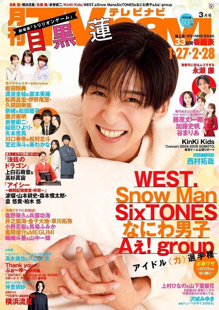 産経新聞グループの産経新聞出版は、美しいグラビアや読み物記事がいっぱいの月刊テレビ情報誌『TVnavi』の3月号を発売しました。劇場版「トリリオンゲーム」出演のSnow Man目黒蓮が表紙に登場。天性の人たらしで世界を覆すハッタリ男役の魅力をインタビューしました。