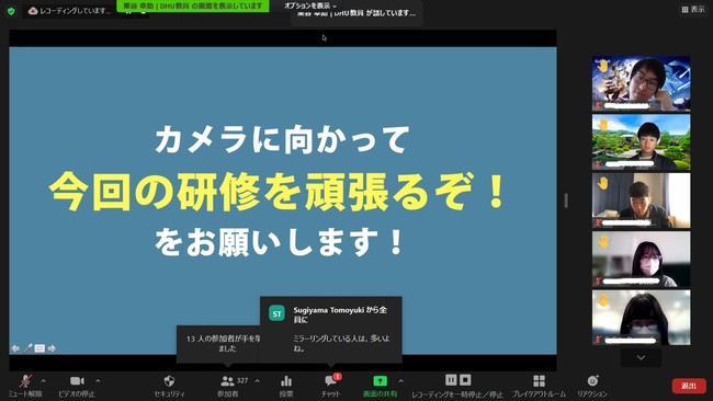 最後に4日目までをまとめた記録映像を視聴、Zoom上で集合写真の記念撮影を行い、研修を終えました。