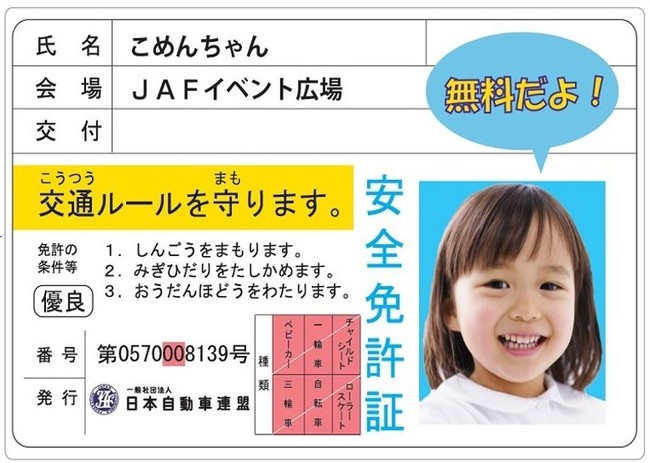 当日はJAFブースにて子ども安全免許証を無料発行します!(10:00~15:00)