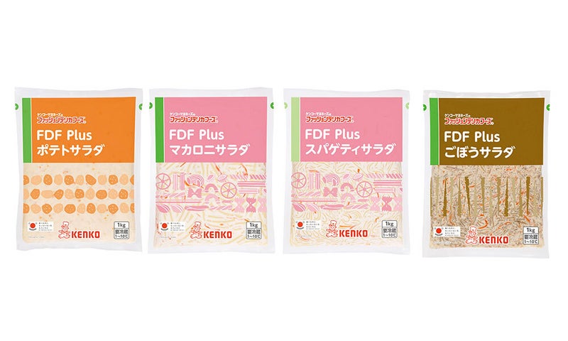 昨今、SDGsの観点などから、世界的な課題となっている食品ロスの削減。「FDF Plus®」シリーズは、賞味期間を当社のロングライフサラダの中で最長の冷蔵で90日間とし、期限内に使い切れないという理由での食品ロスの削減を目指すシリーズです。当社の主力アイテムであるポテトサラダ、マカロニサラダ、スパゲティサラダ、ごぼうサラダをラインナップしています。